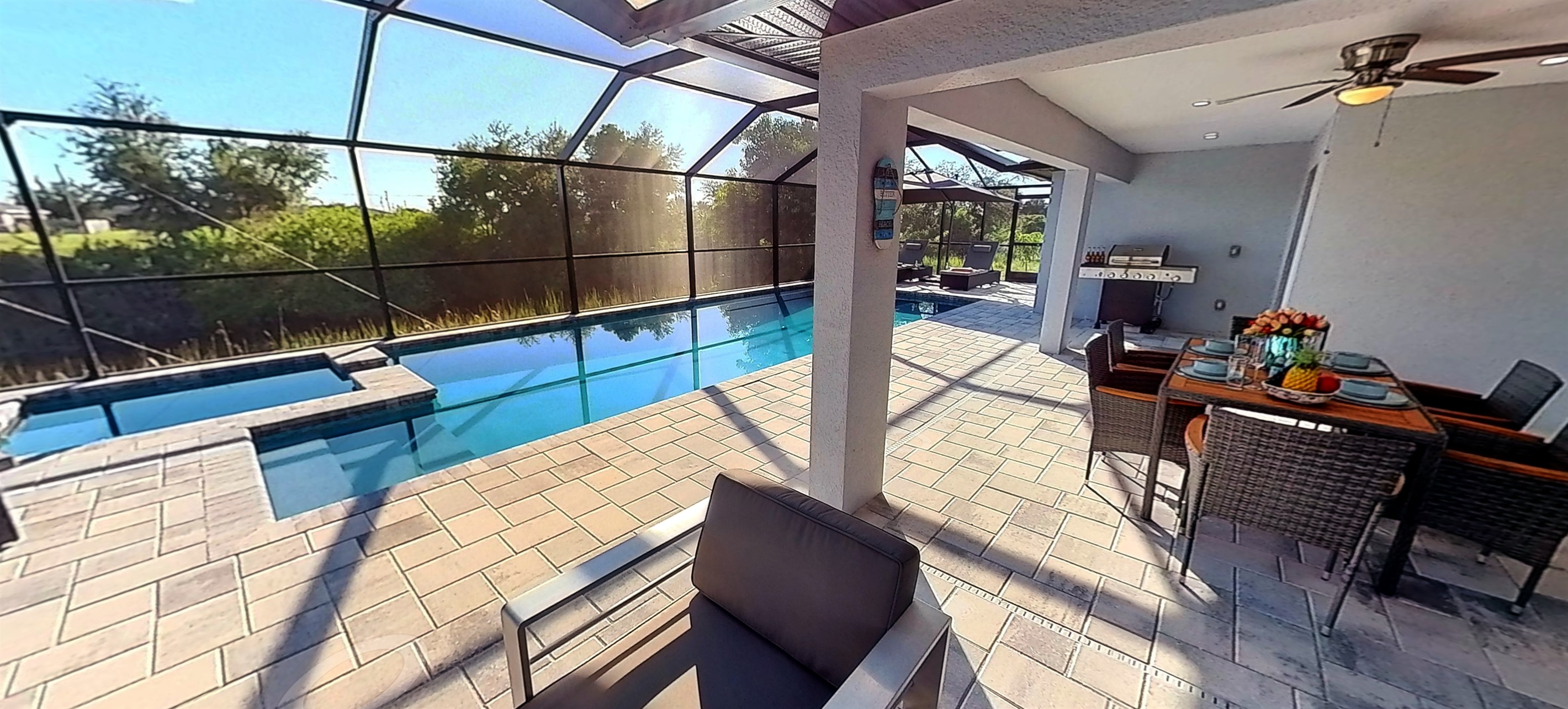 Welcome to Villa Capeside — a modern waterfront home designed for calm, comfort and effortless Florida living. Enjoy a private pool and spa, quiet canal views and bright, open interiors made for slow mornings and long evenings. Your Cape Coral retreat starts here.